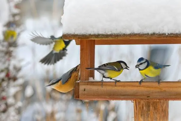 Tylko zimą, gdy na dworze panuje mróz, a ptakom pod pokrywą śnieżną i lodową trudno znaleźć naturalny pokarm. Jeśli zaczniemy dokarmianie – róbmy to regularnie, aż do końca zimy ponieważ ptaki przyzwyczajają się do źródła jedzenia.