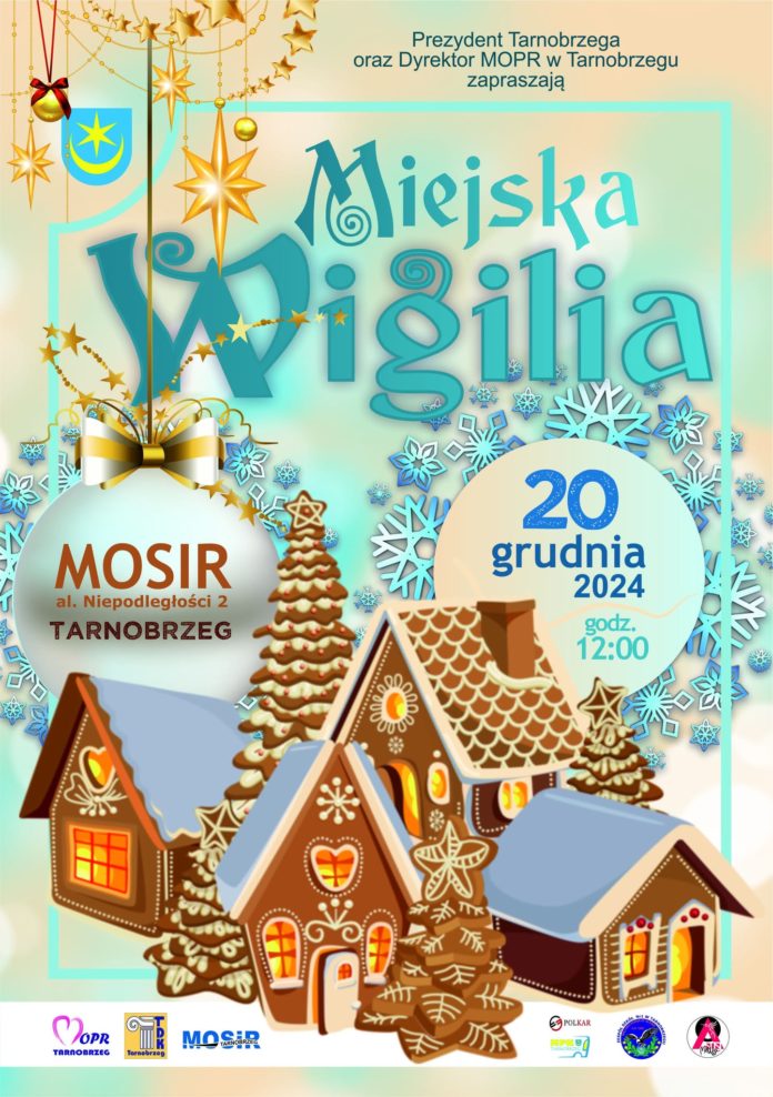 Prezydent Miasta Tarnobrzega oraz Dyrektor Miejskiego Ośrodka Pomocy Rodzinie w Tarnobrzegu serdecznie zapraszają mieszkańców Tarnobrzega na Wigilię Miejską, która odbędzie się w dniu 20 grudnia 2024 r. o godz. 12:00, w hali Miejskiego Ośrodka Sportu i Rekreacji w Tarnobrzegu, al. Niepodległości 2.